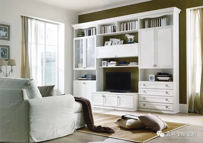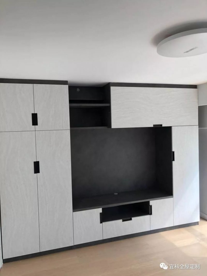客廳是家庭的門面,也是家人最常待的地方。因此很多人都會在客廳的裝修上花費心思,下足功夫,宜科的這位客戶也不例外。一組設(shè)計精良的電視柜,不但解決了客廳的收納問題,黑、白極富對比性的兩色與通頂?shù)脑O(shè)計形成一種強烈的視覺沖擊力。