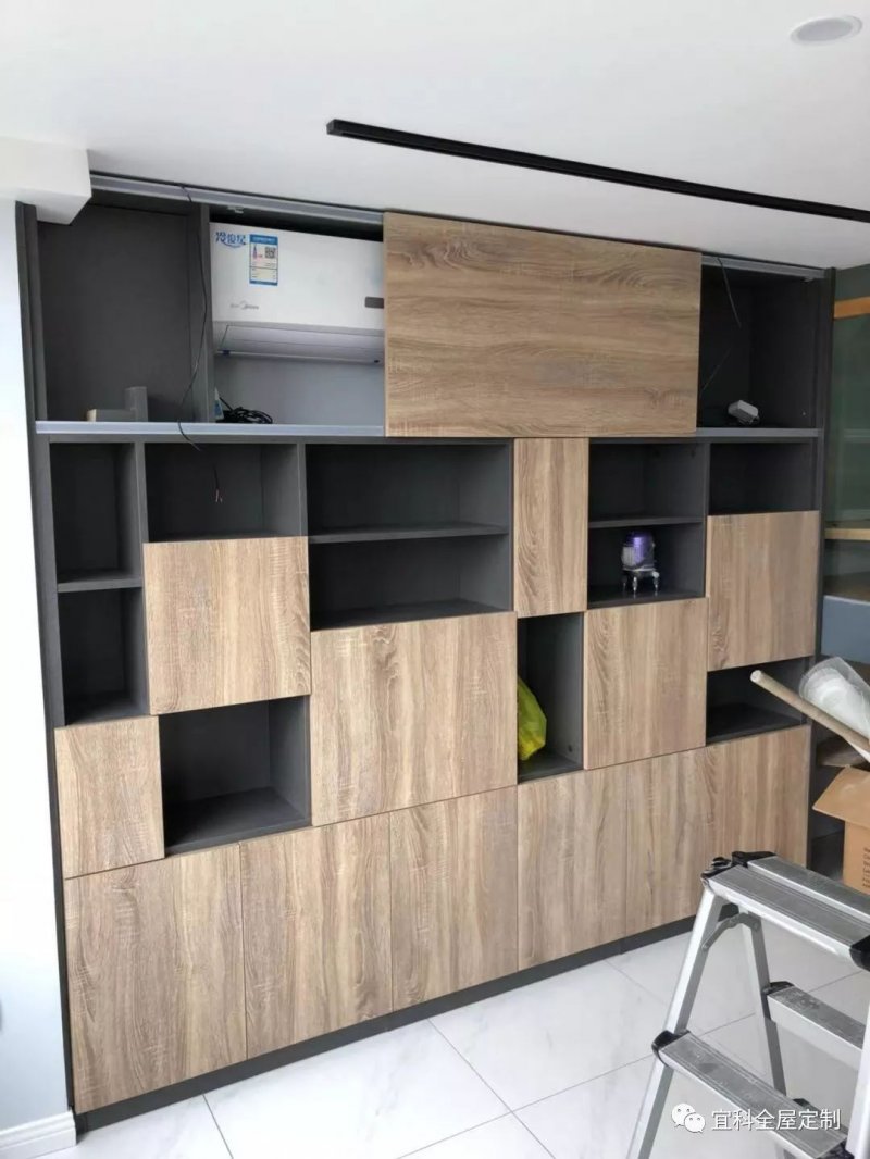 全屋定制最大的優(yōu)勢就是依據(jù)喜好,隨心定制,把空間結(jié)構(gòu)上的不足以定制的形式隱藏優(yōu)化。利用定制的不拘性,腦洞大開改造空間。滬宜路客戶家的這組柜子,在設(shè)計上很是討巧,將空調(diào)掛機隱藏于柜內(nèi),以移動的門板做遮掩,保證了柜體設(shè)計風格的一致性。