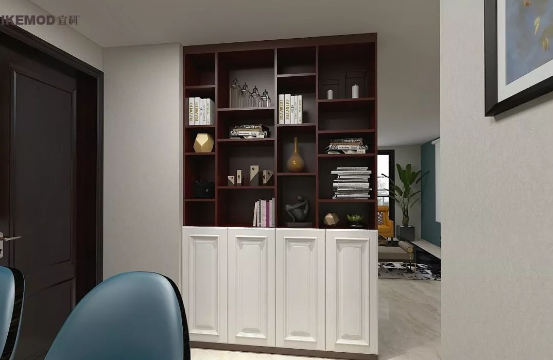 開放式的鞋柜隔斷是指在進(jìn)門處靠墻的位置設(shè)計(jì)一整面的墻柜,墻柜的上下部分可以設(shè)計(jì)成可以存儲(chǔ)物品的柜體結(jié)構(gòu),中間不做任何的分格處理,可以掛上幾個(gè)掛鉤,方便進(jìn)門時(shí)掛一些鑰匙、包包和外套之類的東西。