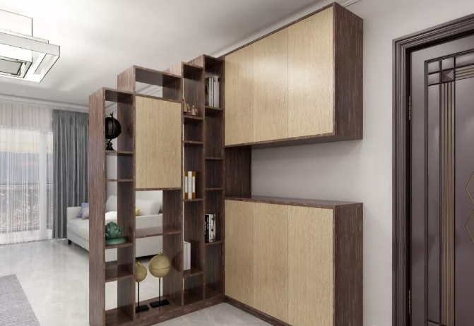 玄關(guān)的通透性很重要,可以利用一些鏤空設(shè)計、柜柱結(jié)合、花格、屏風、立柱、半柜懸掛、紗簾等比較通透的元素作為隔斷,更不會產(chǎn)生壓抑感。