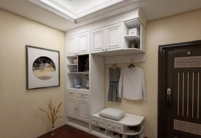 玄關(guān)的比例要恰當,其幅寬要是太小的話,是會影響玄關(guān)的美觀度的,譬如說玄關(guān)柜的寬度為90cm左右就比較舒服。