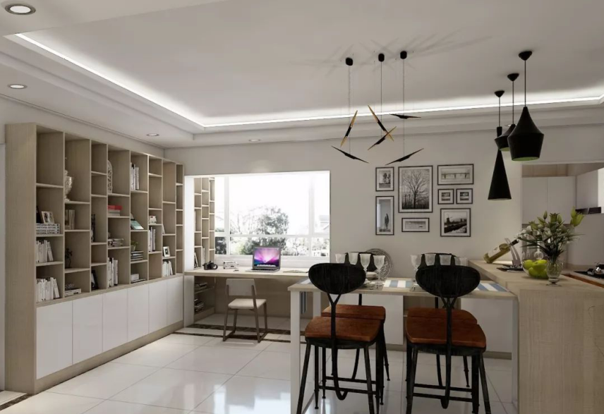 應(yīng)用技巧:例如房間內(nèi)選用明朗的色調(diào),如棕色、綠色、白色等,再加上吧臺(tái)式桌椅、掛畫,整體感覺就會(huì)認(rèn)為,這是一個(gè)活力的年輕人的房間。