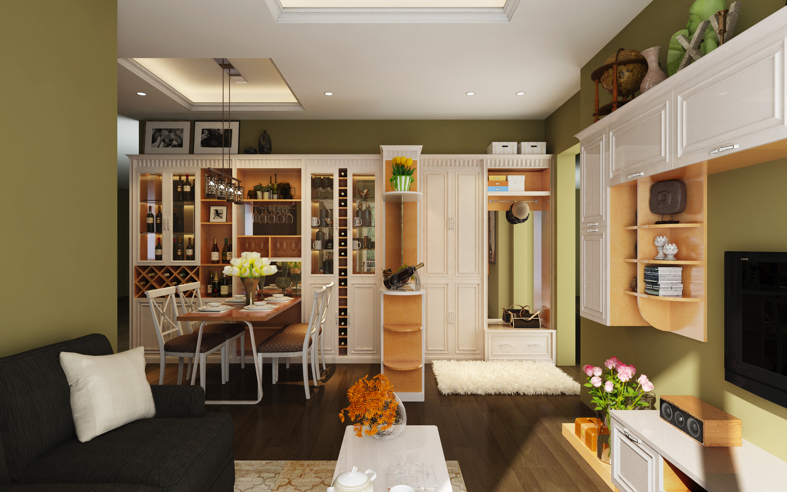 開(kāi)放式的客廳,雖將玄關(guān)也規(guī)劃在內(nèi),但宜科個(gè)性化的定制服務(wù)體系,即使空間再小,也會(huì)使其獨(dú)具魅力。