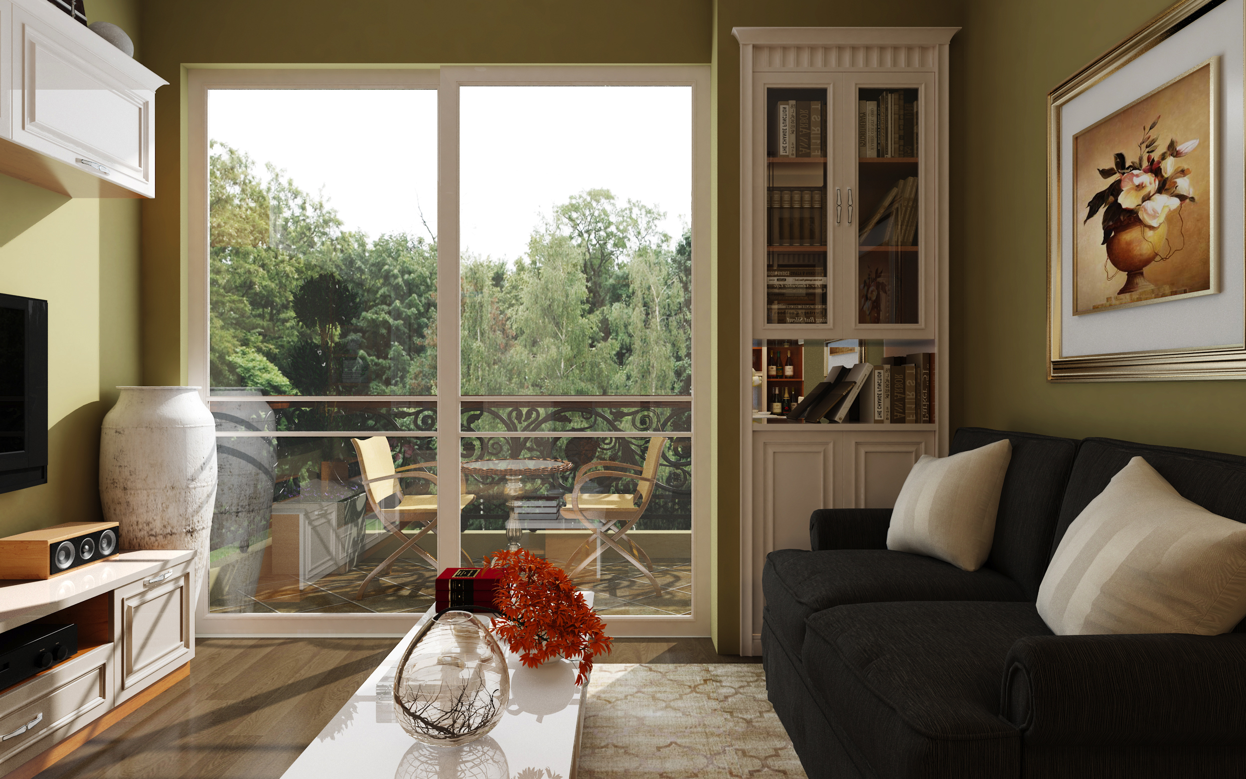 一道移門,隔開(kāi)兩個(gè)世界,室外滿目蒼翠,室內(nèi)一地明媚。細(xì)碎的陽(yáng)光,透過(guò)落地移門,盡情傾瀉開(kāi)來(lái),令滿屋生輝。
