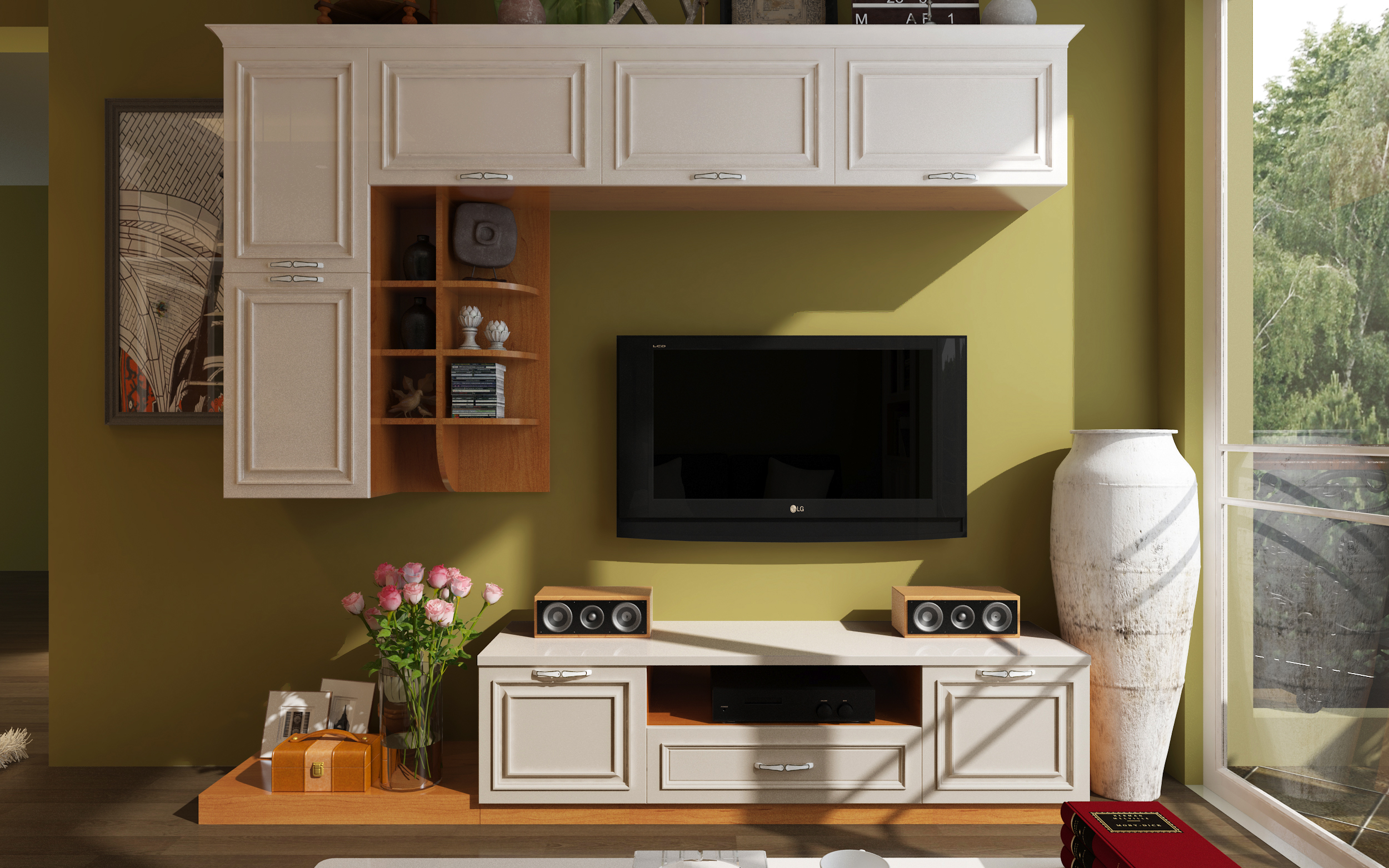 由于一體式結(jié)構(gòu)的設(shè)計(jì)體量過(guò)大,所以趙先生選擇以不到頂?shù)墓耋w設(shè)計(jì)來(lái)緩解空間壓力,頂部預(yù)留一定區(qū)域增加空間儲(chǔ)物量。