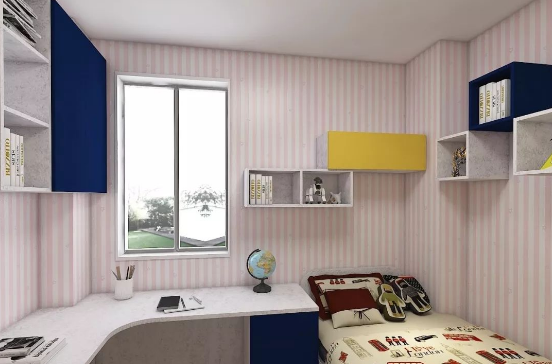 小戶型兒童房在設(shè)計(jì)時(shí),也可以利用墻面空間,墻面上可以設(shè)計(jì)一些小書柜,書柜里面可以放一些供孩子閱讀的書籍,或是精美的小飾品,不僅裝扮了兒童房,又能培養(yǎng)孩子們的閱讀能力。