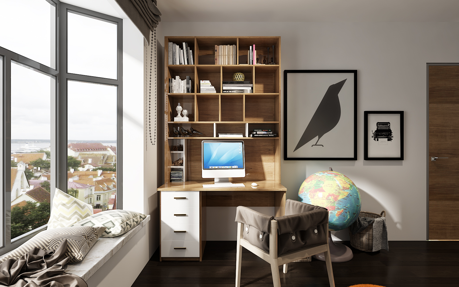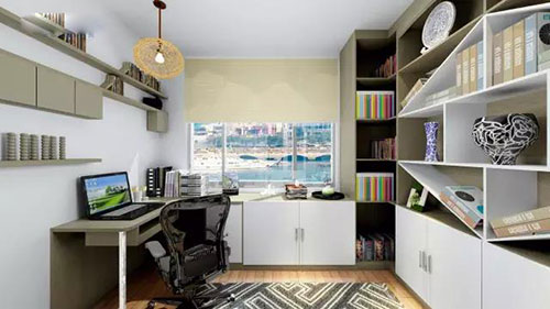 只需要一個小小的角落,可以是房間內(nèi)的一個空曠角落,收納柜和書架都能呈現(xiàn)出來,布局充分的得到擴張,能很好的將雜亂的東西收拾干凈。
