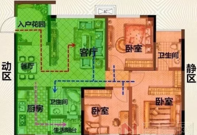 好的家居動線應(yīng)該滿足的條件:動靜分區(qū)少交叉、路線越短越方便、做好收納