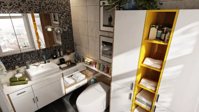 有些家庭在進(jìn)門附近會設(shè)計一個小的儲藏室,回家時隨手將買的卷紙、牙膏等日用品順路放好。