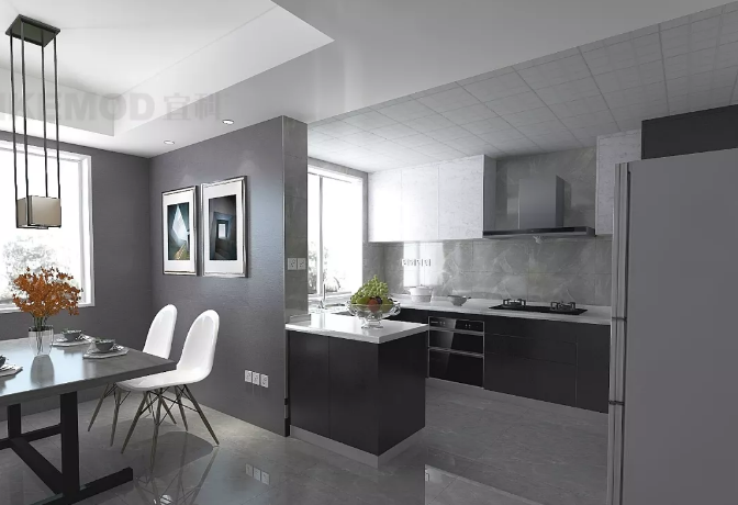 不管廚房是L型、U型、平行,只要形成金三角,做飯的活動都是在三條邊上,就能保證你不會來回反復(fù)的走路去拿取、清理東西。