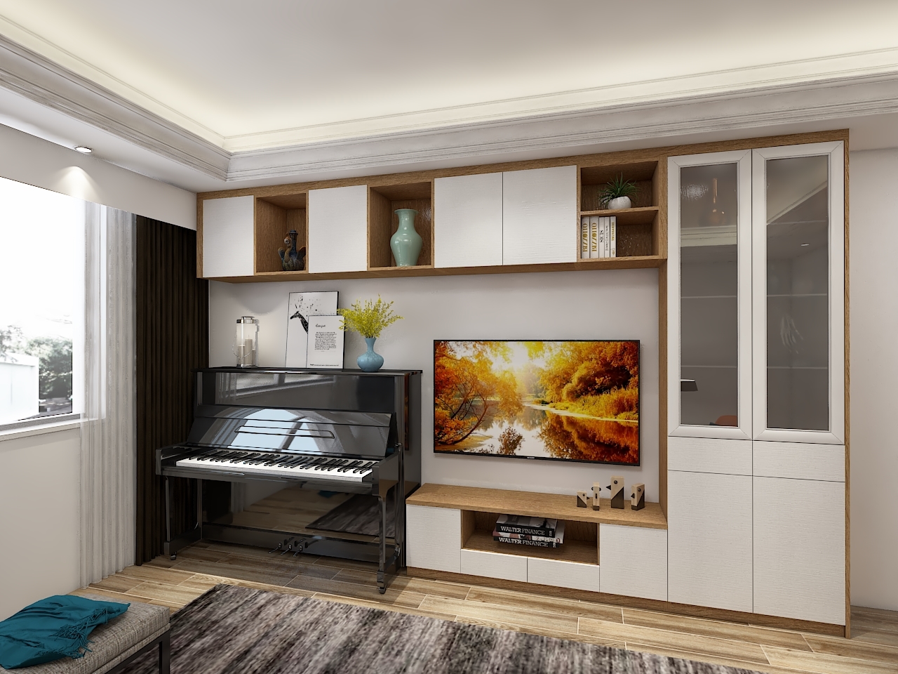 設(shè)計(jì)規(guī)劃時(shí),家具之間或墻壁,難免會(huì)多出一些小空間,如能利用起來,其功能性電視柜和墻壁之間空出了一些小空間,可以通過定制家具延伸處柜體組合進(jìn)行擴(kuò)充,不僅可以作為一個(gè)收納空間,而且還可以作為一個(gè)方格樣式的展架,擺放上一些飾品美化空間。