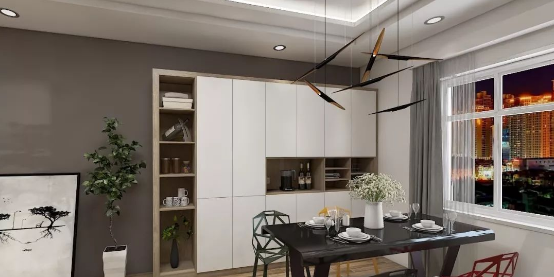 解決方案二:餐廳定制餐邊柜,收納餐具和其他零碎物品,空間整潔不失禮。