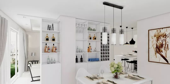 用餐區(qū)除了擺放餐桌椅、餐邊柜或酒柜,還可以加入一些裝飾性元素的點(diǎn)綴,比如在餐桌上擺放上香氣四溢的鮮花,能給家人帶來(lái)活力美好的心情;或在用餐區(qū)的墻面上掛上幾幅框畫(huà),用餐之余也能增加餐廳的可觀(guān)賞性。