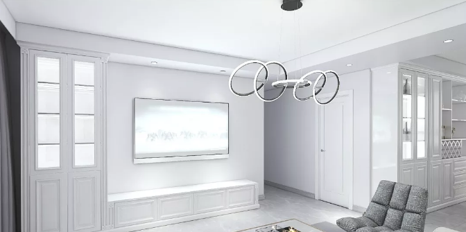 一般電視背景墻上都會(huì)加射燈,讓整體看起來(lái)更加酷炫。但是燈光過(guò)于眼花繚亂的話也有損視力,長(zhǎng)期觀看電視會(huì)產(chǎn)生視覺(jué)疲勞,因此在燈光效果方面,最好以襯托為主,盡量不使用高亮度的燈飾產(chǎn)品。