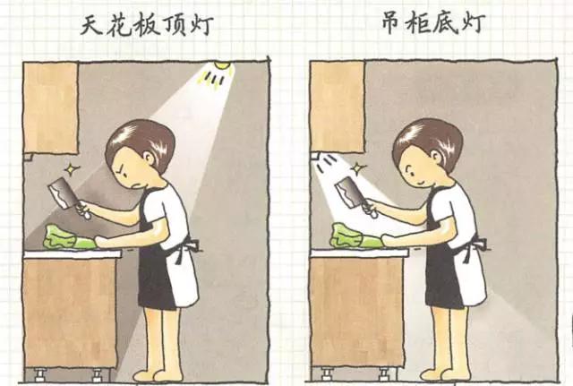 是不是瞬間秒懂小編為啥推薦吊柜底燈了呢?最好是能裝感應(yīng)開關(guān),做飯的時(shí)候,手基本上是濕的。所以感應(yīng)開關(guān)能提高安全系數(shù);