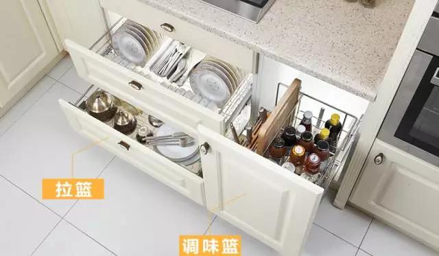 地柜:最復(fù)雜的也只有5,6種‘積木’組合而成的。設(shè)備柜為了裝下設(shè)備而做的,比如消毒柜,水槽柜,灶臺(tái)柜;儲(chǔ)物柜的主要功能是儲(chǔ)物,主要有隔板柜,拉籃柜,抽屜柜。