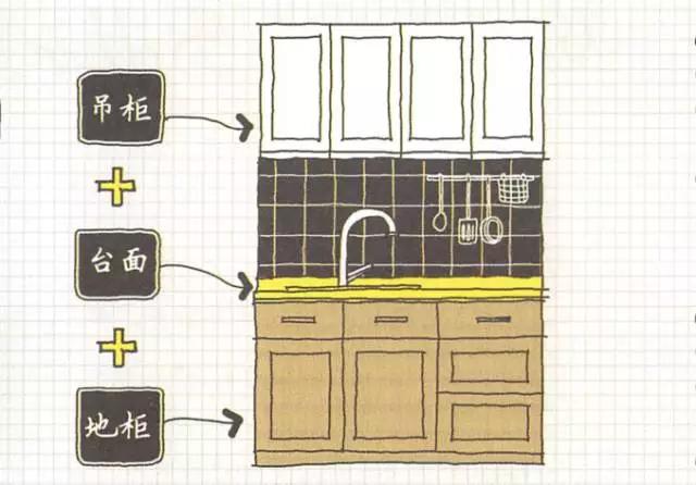 櫥柜是好用廚房的第二個(gè)要素,雖然櫥柜的外觀風(fēng)格各異,價(jià)格千差萬別,但是它的最基本形態(tài)永遠(yuǎn)是‘上中下三段式’。即吊柜+臺(tái)面+地柜;