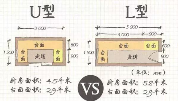 臺(tái)面面積相等!廚房面積竟然相差了30%!所以,你明白該怎么選擇了嗎?‘U’最好了!