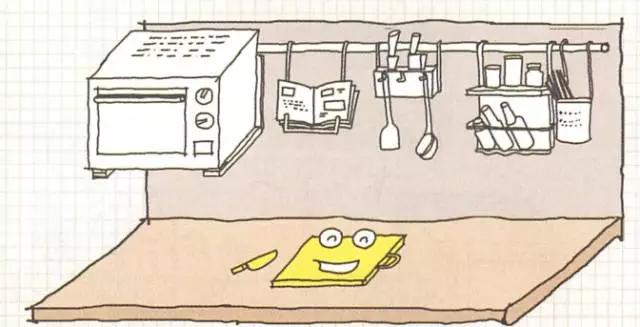 分清主次,在備餐區(qū),主:刀和砧板,配:調(diào)料,勺瓢,盆。所以,讓次要物品上墻就是一個(gè)很好的辦法,既不占用配餐區(qū)的東西,又能順手使用!