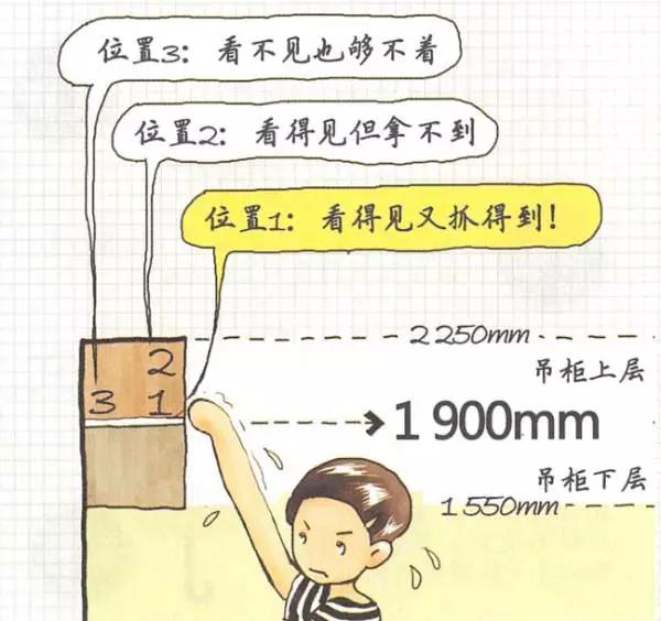 H3:吊柜頂部一般取值2250mm,超過這個(gè)高度,最上層徒手不夠高,要借用凳子。