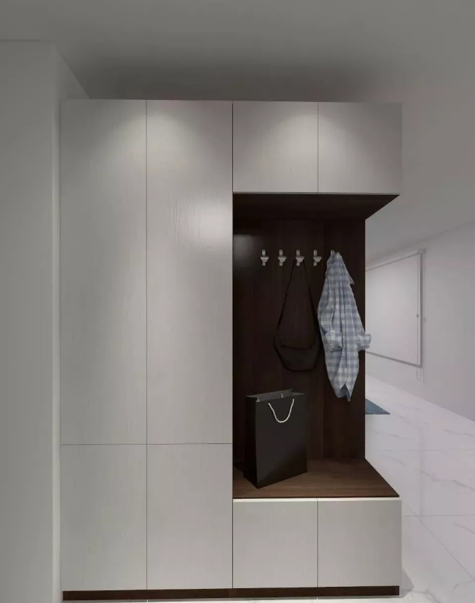C型玄關(guān)是家庭玄關(guān)中較為常見的一類,造型簡潔,收納力max絕對是打造小戶型玄關(guān)的不二之選。
