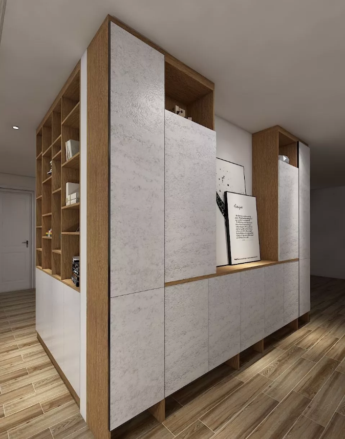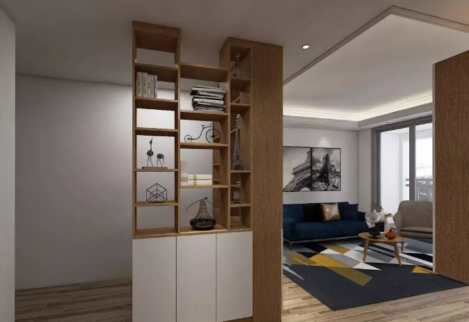 矮柜+隔斷多用于開放式客廳中,業(yè)主為了避免“開門見廳”的尷尬,既想保護私密又要顧及空間的通透感,隔斷式玄關(guān)再合適不過了。