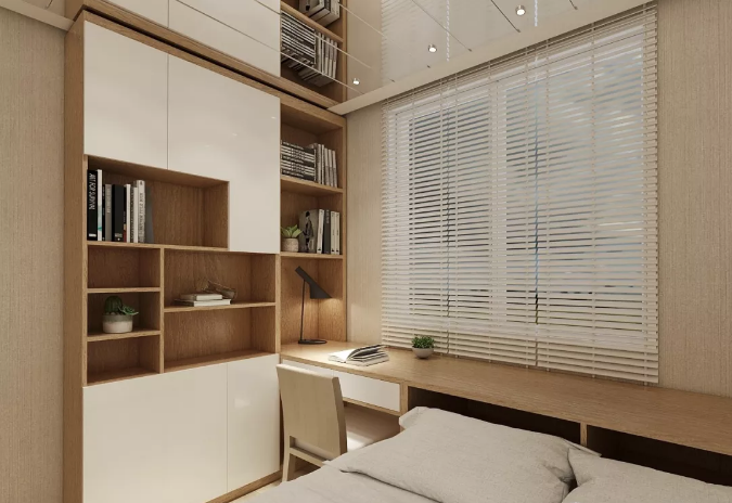 家里沒有單獨的書房,或是作為嗜書如命的書蟲,在臥室里增加一個閱讀區(qū),是最常見的做法。利用臥室的拐角連接書桌柜,或是利用衣柜書柜一體化設計,巧妙增添一個舒適的閱讀角落,讓書香溢滿臥室,連心情也明媚起來哦~