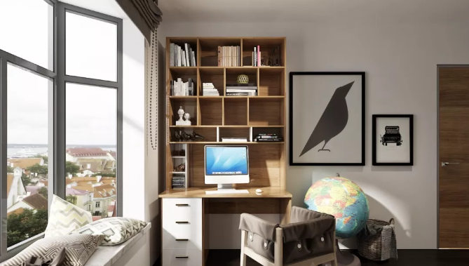 直接面對窗戶,最大的好處就是視野廣闊,獲得足夠的光照;如果窗外再有賞心悅目的景色,休息時抬頭遠望,就更美好了。這樣一個學習和娛樂兼具的環(huán)境,創(chuàng)造出新的生活樂趣。