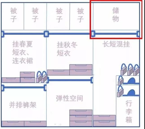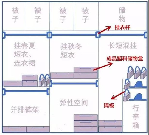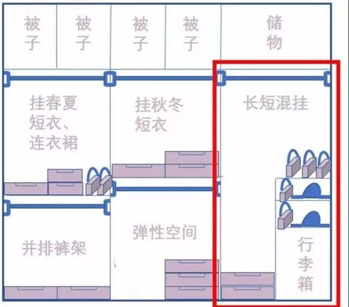 下方是彈性的區(qū)域,既能掛衣又能放抽屜或箱子之類的,看你自己的安排。