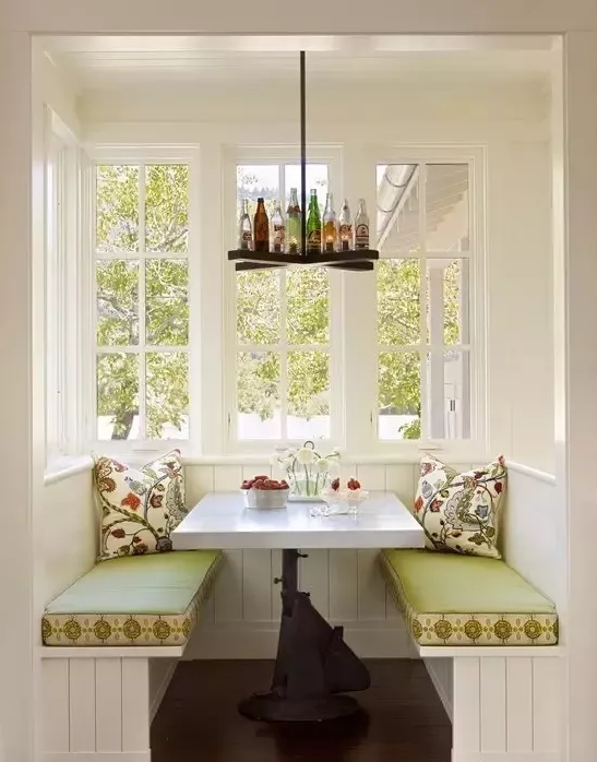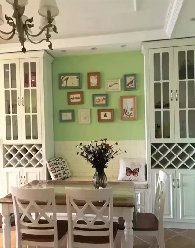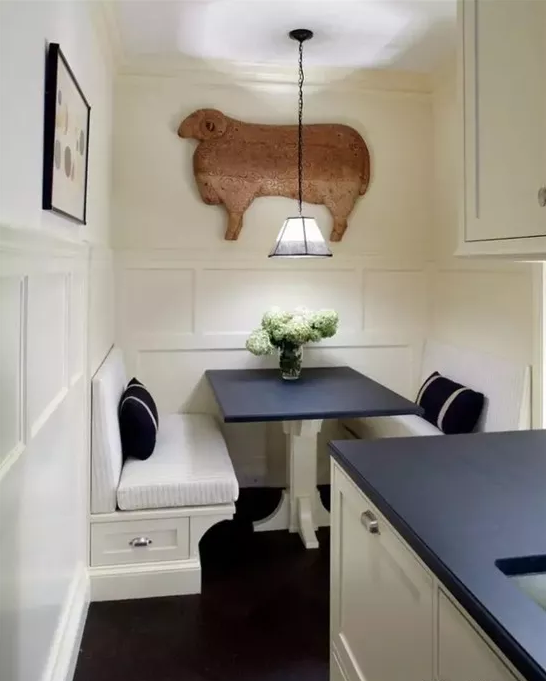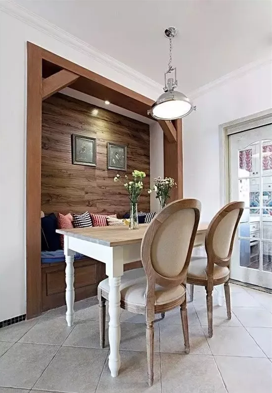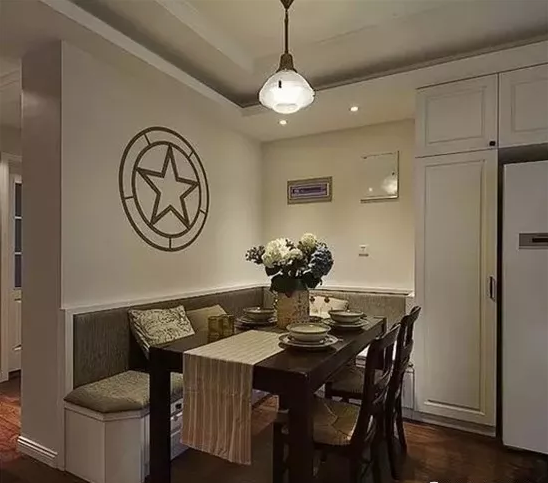 如果家里餐廳比較小,無(wú)法放下一張大的餐桌,不能滿(mǎn)足全家人的就餐使用,那該怎么辦呢?那就在墻角來(lái)個(gè)卡座設(shè)計(jì)吧,這樣既能為餐廳增添情調(diào),還能很好的解決就餐問(wèn)題噢!