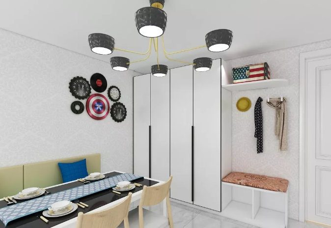 戶(hù)型過(guò)小,收納空間嚴(yán)重不足,因此每一平米都不能浪費(fèi),合理規(guī)劃、高效收納,是對(duì)高價(jià)購(gòu)得的房子的基本“尊重”,比如餐廳空間, 做一個(gè)卡座式的餐廳,再加上墻面空間的利用,把柜子做滿(mǎn)墻。