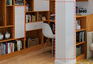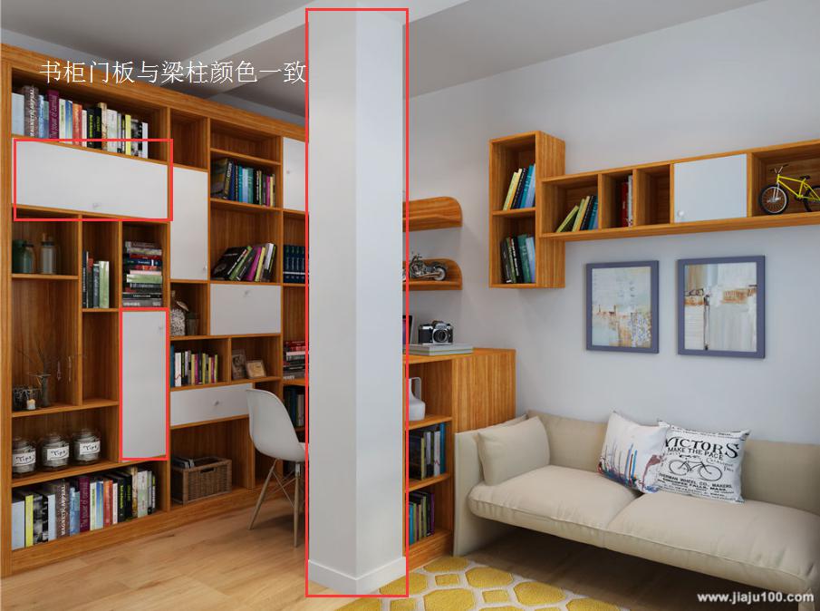 書(shū)柜的白色門(mén)板與梁柱的顏色一致