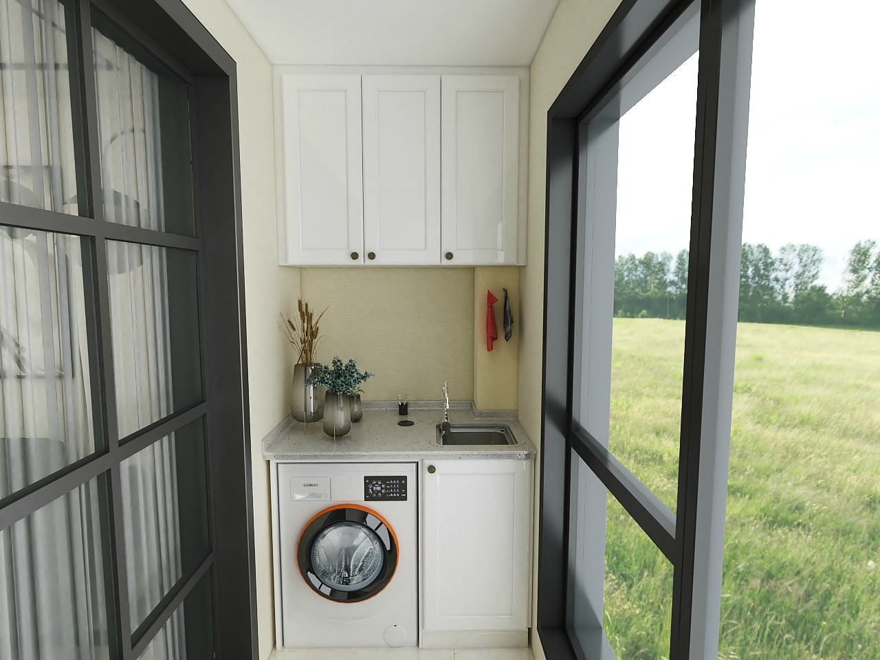 如果你想打造一個(gè)獨(dú)立的空間,建議隔斷。不要局限于陽臺(tái)的晾曬功能,花房、洗衣房、書房、儲(chǔ)物間、小餐廳、小廚房、小吧臺(tái)等功能空間都可以充分開發(fā)。