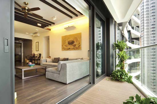 利用折疊門將陽臺(tái)和室內(nèi)隔斷,而玻璃的透明性并不會(huì)影響屋內(nèi)的采光,同時(shí)晚上能有效隔離噪音和溫差。