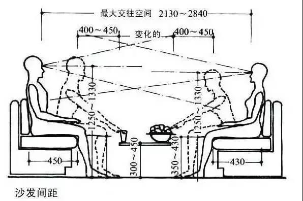 對(duì)立而坐時(shí),二人的最大交往空間為 2130-2840mm。