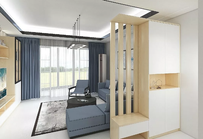 客廳是家居中最主要的公共活動(dòng)空間,不管是否做人工吊頂,都必須確保空間的高度,不會(huì)太過(guò)于壓抑,這種最高化包括使用各種視錯(cuò)覺(jué)處理。在墻紙和家具的選擇上可以解決,比如墻紙可以采用純色和豎條紋。家具盡量淺色。
